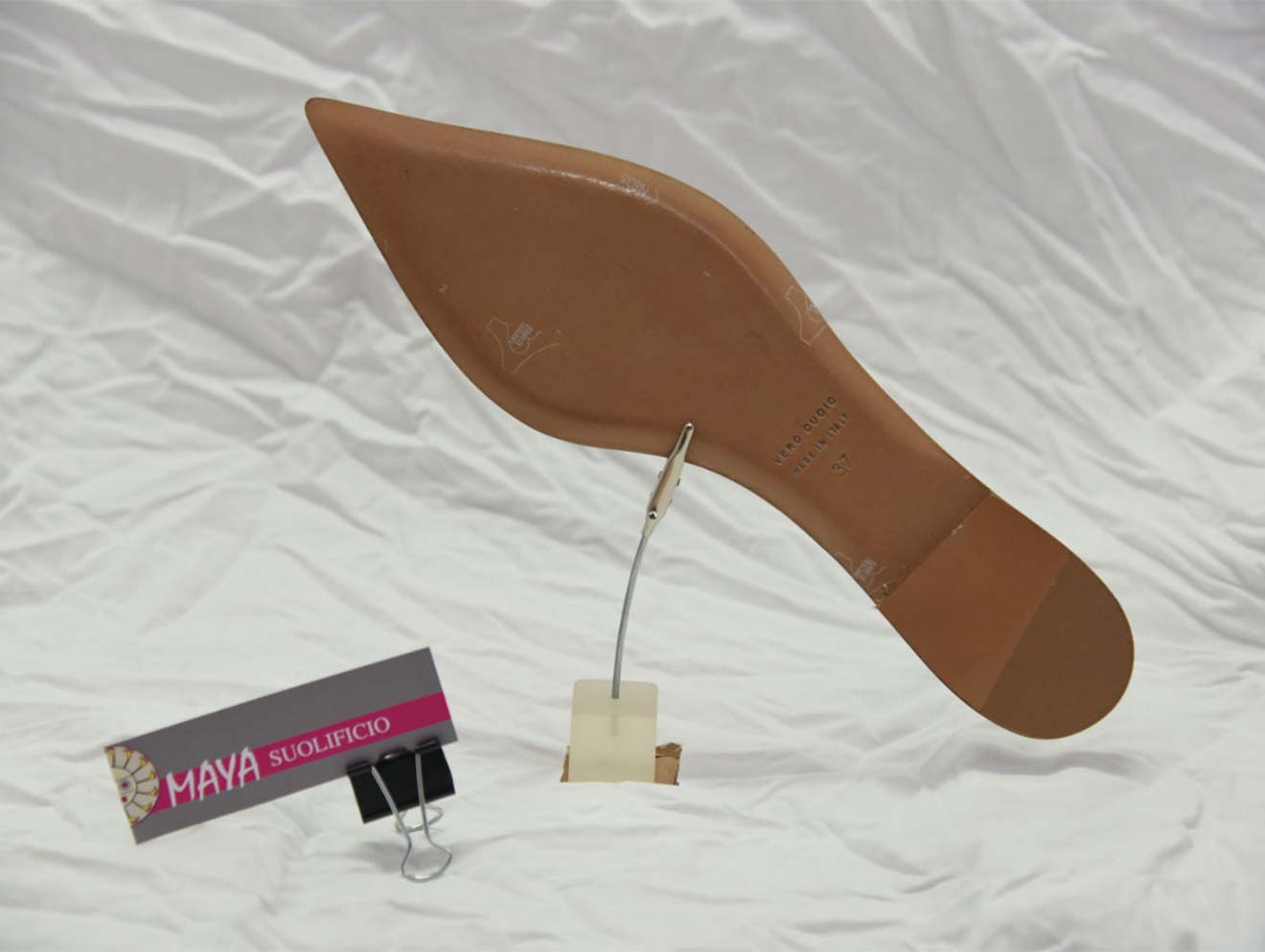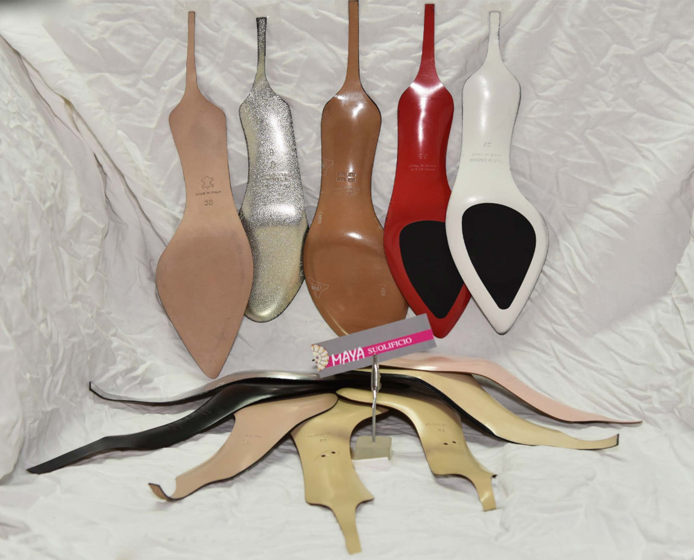 Da oltre 50 anni Suolificio Maya unisce esperienza artigianale e innovazione per realizzare suole di alta qualità per calzature eleganti da donna. Lavoriamo principalmente il cuoio, ma possiamo produrre in qualsiasi materiale richiesto, offrendo soluzioni su misura e un servizio di modelleria rapido e preciso. Ogni giorno realizziamo migliaia di paia di suole, collaborando con calzaturifici di grande prestigio e garantendo sempre qualità, affidabilità e attenzione alle esigenze dei nostri clienti.